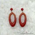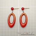 落ち着いた色合いの赤い楕円形リング型の漆ピアス。