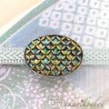 蒔絵・螺鈿帯留め 七宝つなぎ紋 楕円 彫刻 螺鈿 銀蒔絵 純金蒔絵 漆帯留