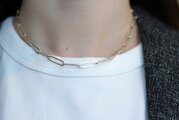 存在感がありつつ、軽やかな着け心地が魅力的なクリップチェーンを使用し、ボリュームのあるデザインのネックレスを制作いたしました。