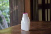 白色の本体に口元に施されたさりげないピンクの縁取りが