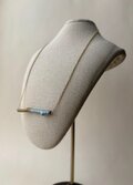 ネックレスとして仕上げたこの作品は真っすぐな枝に所々ポコポコっと節があり、シンプルながら個性が出た1点。ゴールドと水色の糸が夏らしく爽やかな印象になります。