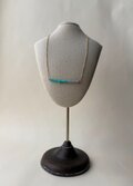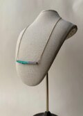 ネックレスとして仕上げたこの作品は少し細めで真っすぐの枝にシルバーとターコイズブルーの糸で爽やかな夏にぴったりの1点に仕上げました。