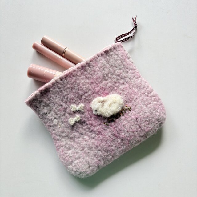 やわらかい色に染まった、おさんぽラムキンのポーチです。