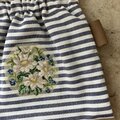 ストライプ模様にお花の刺繍ワッペンを施しました。ワンタッチで開け閉めできるのが便利です。