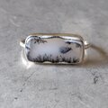 雪景色のような奥行きのある美しいデンドリティックオパール(メルリナイト)をダブルフィンガーシルバーリングに仕立てました。