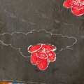 そこへ雲と椿を思わせる朱赤の花を大胆に散らし、