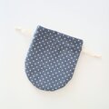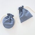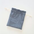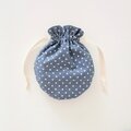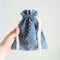 ナチュラルな風合いが魅力のシャンブレー生地に、小さな水玉模様が散りばめられた巾着ポーチです。