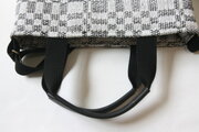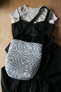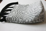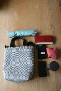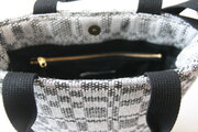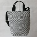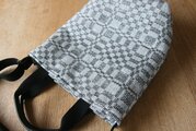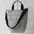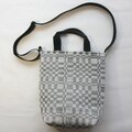 ブロック柄を手織りした布でショルダー付のトートバッグに仕立てました。