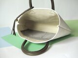 色 ビアンコ(白〜生成り)、持ち手はグリージオ(緑グレー)、内ポケットはグレー、縫い糸はグレー