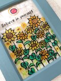送料無料!ステンドグラス風 ひまわり畑 グラスアート イラスト プレゼントにも 夏雑貨 インテリア雑貨 ハンドメイド