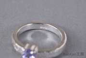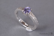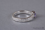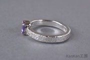 リングは平打ちの腕に全周荒らし模様を施し、素材の質感を引き立てています。