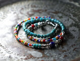 カラフルなビーズはクリスマスビーズと呼ばれています。西アフリカではこのカラフルなビーズをクリスマスに身に着けることから、このように呼ばれています。今回使用したものはすべてベネチアのものです。ホワイトハーツも含まれます。