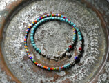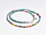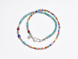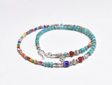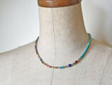 シェブロンビーズとクリスマスビーズと筒型ターコイズ、カレンシルバーを繋いだカラフルなネックレスです。