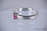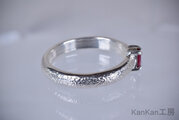 厳冬の朝、薪ストーブの小窓から見る燃え始める炎のような赤が印象的なリングです。