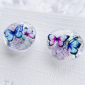 蝶とかすみ草、シルバーのシャワーグラス、ホログラムを