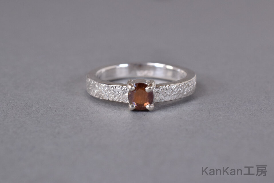 リングの腕は平打ちに仕立て、全周に荒らし模様を施しました。