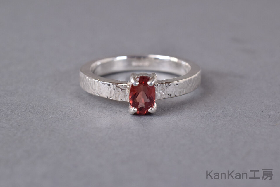 本作の石は、オレンジをわずかに噛んだベリー系の明るいレッドカラー。