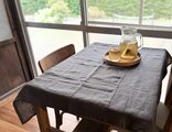 やさしいグレーが、光を受けて豊かな表情を見せてくれるリネンのクロス。