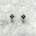 直径7mmのボタン型淡水パールに黒漆模様を描き、鮑貝の螺鈿細工をアクセントにした小さなパール漆イヤリング。