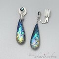【sv925】レース模様 瑠璃色螺鈿と黒漆イヤリング 雫型 プラチナ箔 純金箔 漆アクセサリー