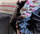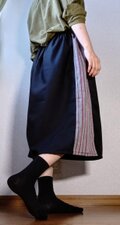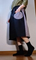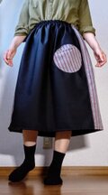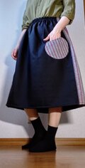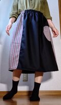 黒生地と木綿着物生地を合わせた、夏の涼しげ軽い爽やか個性的スカートを作りました。