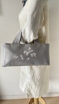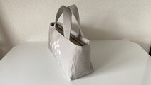 上品な作品です。 きわめて軽く、かつしっかりした作りです。収納力があるので、和装のサブバックとしても、洋装のメインバッグとしても使えそうです。 とても気に入りました。素敵な作品をありがとうございます。 個人的に、紫系の帯バッグや、帯ベルト(写真参考)を、お時間が許せばお作り頂けると嬉しいです。勝手申しましてすいません。