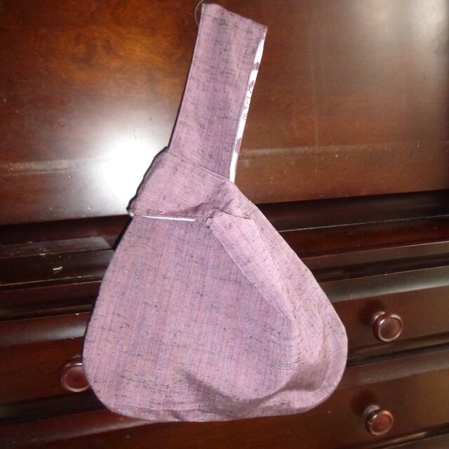 正絹の紬の着物をほどいて作ったシジミバッグです。(シジミバッグの名前の由来は知りませんが、この形のワンハンドルバッグの呼び名です。形がシジミに似てるのかな?)状態のいい部分の生地を使っていますが、昔の生地であることをご理解下さい。正絹で光沢のある節のある紬です。