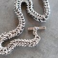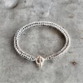 チェーンメイルという技法で、丸カンを複雑に組み上げたシルバー925製のブレスレットです。組み方によって最適な丸カンの太さ、大きさがあるため、丸カンから手作りした非常に手の込んだ一品です。