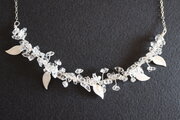 スターリングシルバーのリーフと 小さなハーキマーダイヤモンドを ひとつずつ踊るようにつなげました