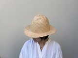 木型でできた中折れ夏物ハットユニークな形ですが、とっても可愛いです。また、作りがしっかりしているけどとても軽くて、今年の猛暑でも蒸れずにかぶっていられます。とっても気に入って毎週末使わせていただいてます。ありがとうございました。