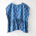 インドの木版更紗で切り替え下ギャザーたっぷりのブラウスを作りました。
