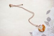 思っていたよりも、ペンダントトップが大きくて、私はこの位だといいなと思っていたので、とってもうれしくなりました!!お花が大好きで、特に白いお花が好きで、このネックレスには白いお花が入ってるので、大好きなお花を身につけられて、とってもうれしいです! 作って下さり、ありがとうございました。大切にします️