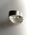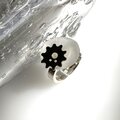 日常のお洒落にもお出かけにもお使い易いですよ。(11/9) 秋の夜空のような冴え冴えとした銀の梨地リングに、ピカピカの黒いガラスを嵌めました。