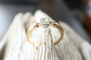 クッションカットのイエローダイヤモンドを使った指輪です。