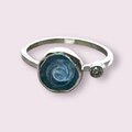 バラの彫刻の入ったアクアマリンを使用したシルバーリング、シンプルで洗練されたデザイン。