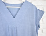 【大きいサイズ】コットン素材のシンプルなVネックワンピース ライトブルー