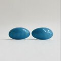 こちらは樹脂素材のカボションに、オリジナル塗料にて何層にも渡り重ね塗りを施した日本製樹脂塗装ビーズイヤリングになっております。ビーズカラー塗装はさわやかなターコイズブルー。ビーズサイズは直径約17x29mmのオーバルカボションで、緩やかで不規則な凹凸のあるバロックタイプとなっております。金具にはオーソドックスなネジバネタイプを使用。