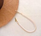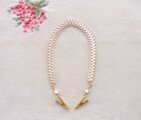 留め具部分に、ゴールドに縁取りされた白い花のパーツを合わせ、エレガントな雰囲気にまとめました。