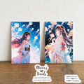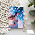 《空とぶクラゲと浴衣の女性》☘️ 幻想世界 イラスト アート ハガキ ポストカード 2枚 セット