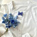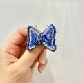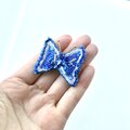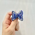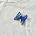 蝶の羽の側面には、ちいさな青いお花のスパンコールを使いました。