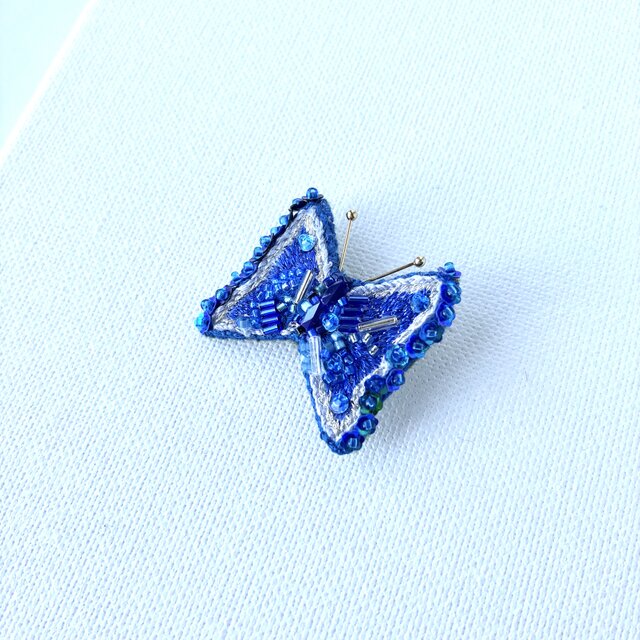 青くうつくしい蝶の刺繍ブローチです。