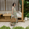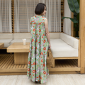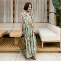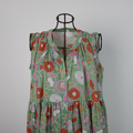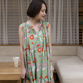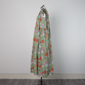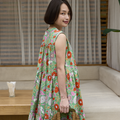 【着丈調整可能】蒸し暑い時期にサラサラしたインド綿 プリントティアードワンピース グリーン 0736GR