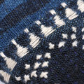 鮮やかな縹色に染められた縞の型染めと、深い海の底や夜空を思わせる濃い藍染の、