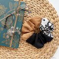 →シンプルな装いに、シュシュの柄や色がよく映えます。無造作なまとめ髪にラフに使ってもかわいい。