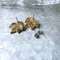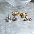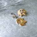 ゴールドトーンのリーフとシルバートーンのスワイラルパーツが取り外しできるコンバーチブルピアス。