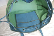 同じ8号帆布の渋いブルーで持ち手のベルト、見返し、内側のポケットを付けてます。