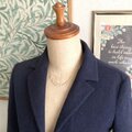 シャツの開けた襟元に細いネックレスを添えると、きちんと感と女性らしさを醸し出せるので、オフィスワークにもよろしいかと。