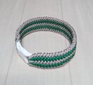 ディープグリーンとサンドベージュのコードの2色編みです。