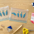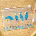 ちょこんと佇んだりおじぎをしたり、個性あふれるハシビロコウが並んだ透明のフラットポーチです。