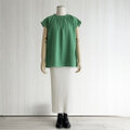 フレンチ袖クルーギャザープルオーバー_ダブルガーゼ綿100%_Green